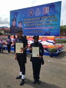 S.Inspektor/K Alzimar Ali dan Sarjan Mejar/K Nur Erina Hazwanie Farahain Binti Azhar telah diberi penganugerahan sempena Sambutan Hari Polis yang ke-211.
