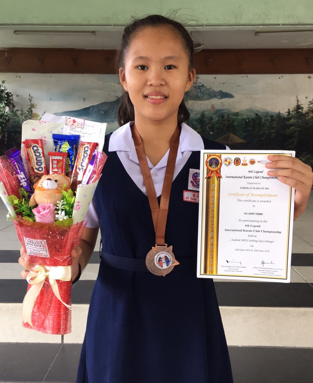29-30 Jun 2019, adik Jill Saint James telah menyertai 6th Legend International Karate Club Championship yang dianjurkan oleh Kibokan Karate Do  di Stadium MPSJ Serdang Jaya Selangor. Adik Jill Saint James berjaya mendapat pingat Gangsa dalam acara ini. Warga SJKC Yick Nam mengucapkan syabas kepada adik Jill.