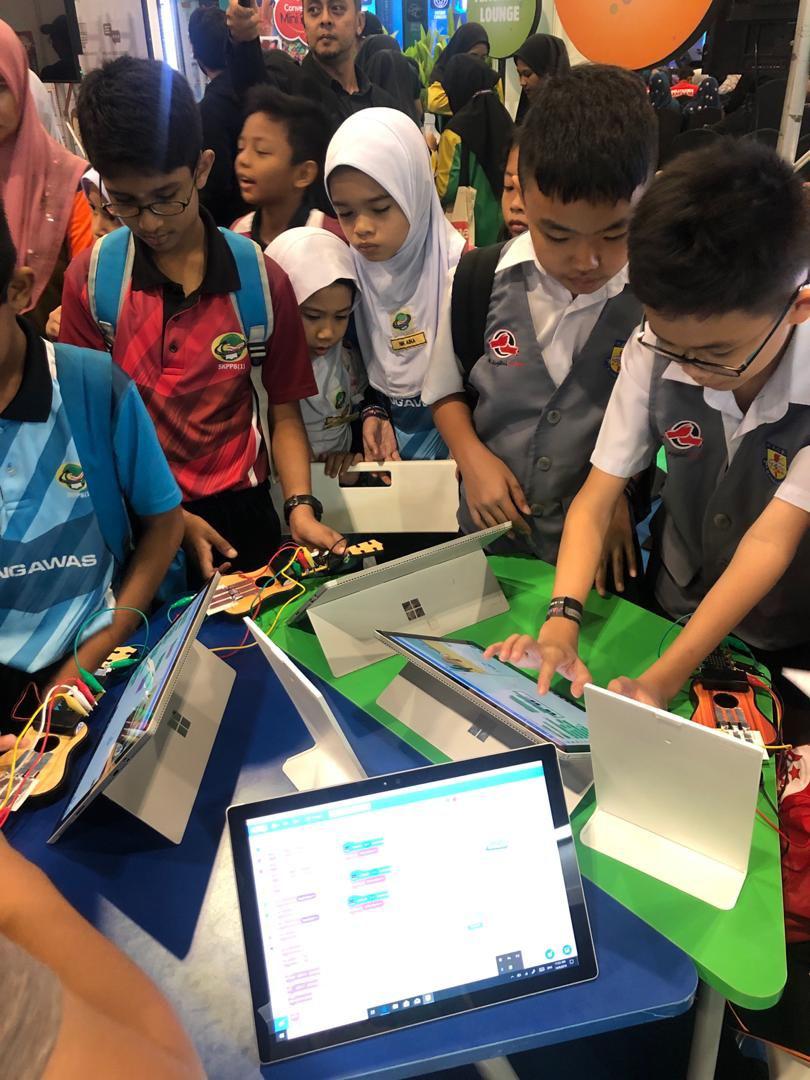 14 Sept 2019, rombongan #mydigitalmaker@champion school SK(C) Anglo Chinese yang diketuai oleh Guru Besar Puan Ong bersama Cikgu Kenneth Liew dan Cikgu Lawrence Ling serta 8 orang Duta Penggerak Digital telah berada di aktiviti kemuncak lawatan kali ini iaitu #MYDIGITAl MAKER FAIR’19 yang bertapak di Malaysia International Trade & Exhibition Centre, Kuala Lumpur. Pelbagai aktiviti dan pameran seperti bengkel dan class tentang programming / robotics, e-sport, e-ladang, Digital Ninja, Microbit Workhop, Digital Art Design, drone flying, FIFA 19 Tournament, Astonaut, Penggunaan Teknologi dalam Pekerjaan masa depan. Junior Innovate Competition dan lain-lain. selain daripada melawat ke pameran dan bengkel ini, 8 orang Duta Penggerak Digital pun menjalankan peranan sebagai Duta dengan mengajar orang awam tentang Microbit. Lawatan ke #MYDIGITAl MAKER FAIR’19 kali ini juga dimeriahkan lagi dengan kehadiran Encik Azmi dari JPN Sabah, Puan Shirney Lim dari PPD Kota Kinabalu bersama-sama rombongan champion school dari Sabah.