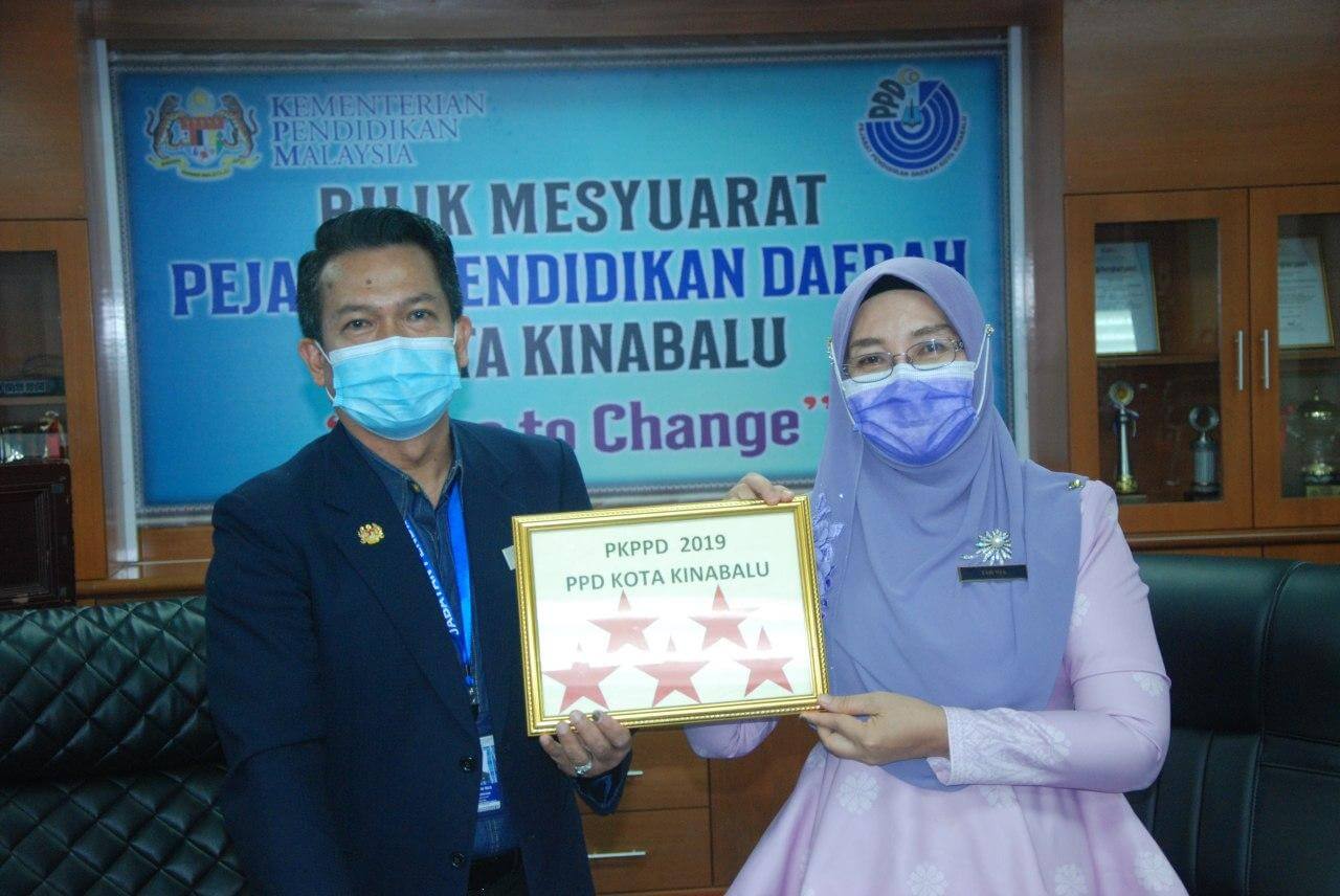 Tahniah kepada PPD Kota Kinabalu dibawah pimpinan Puan Tah Nia Bte Hj Jaman dengan Oasis Kecemerlangan 9 – OK9 yang tunjang modul kepimpinan PPD Kota Kinabalu semenjak dia mengambil alih pengurusan PPD Kota Kinabalu. PPD Kota Kinabalu telah mendapat 5 bintang dengan lonjakan 2018 95.99% -(4 bintang) -meningkat kepada 98% (5 bintang). Moga dengan Penarafan Kecemerlangan ini PPD Kota Kinabalu akan terus bersaing untuk memanafaatkan masyarakat. Terima kasih kepada Tuan Halim dan Tuan Makmur yang menjadi verifikator untuk PPD Kota Kinabalu – 13 & 14 Oktober 2020 yang dilaksanakan secara online dengan Tuan Abd Halim Bin Abd Rahim dan lapangan bersama Tuan Makmur bin Ibak