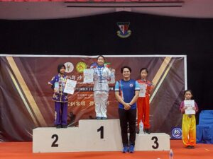 - Krystabelle Kang Yu Han, membuktikan kehebatannya dengan menggondol 3 pingat emas dalam kategori Group C Female Chang Quan, Group C Female Daoshu dan Group C Female Gunshu.