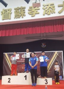 - Javier Tsen Yu Hong, yang berjaya meraih 1 pingat emas dan 2 pingat perak dalam kategori Group C Male Chang Quan, Group C Male Daoshu dan Group C Male Gunshu.