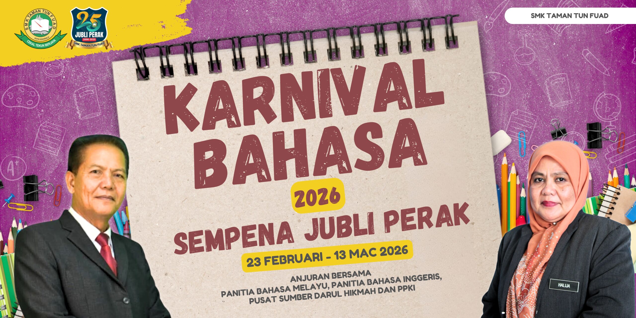 DEWAN TUN FUAD, 13 MAC 2026 – Program tahunan iaitu Karnival Bahasa dan Peluncuran AINS Nilam peringkat sekolah telah melabuhkan tirai dengan jayanya pada hari ini dengan pelbagai aktiviti menarik yang melibatkan penyertaan murid perdana dan PPKI. Karnival ini adalah gabungan Bidang Bahasa (Panitia BM dan BI), PPKI dengan kerjasama Pusat Sumber Darul Hikmah SMK Taman Tun Fuad. Karnival ini telah dijalankan bermula dengan perasmiannya pada 23 Februari 2026 sehingga 13 Mac 2026. Majlis penutupan karnival telah disempurnakan oleh Cik Yong Pei Na, Pegawai SISC+ Bahasa, PPD Kota Kinabalu mewakili Pegawai Pendidikan Daerah Kota Kinabalu. Antara Pertandingan-pertandingan yang dijalankan ialah Mengulas Buku Cerita, Pidato, Forum, Deklamasi Sajak, Dendangan Syair, Bahas, Story telling, Poetry Recitation, Public Speaking, Dare to Spell, Scrabble, English Nilam, PBL dan Pertandingan Bahasa di peringkat PPKI seperti Deklamasi Sajak, Susun ikut urutan, Teka Maksud Peribahasa, Poem Recital, Make it Sense Short Story dan Complete My Story. Tambahan itu, jualan buku dan majalah oleh Dewan Bahasa dan Pustaka telah diadakan di Dewan Tun Fuad pada 12 Mac 2026. Karnival yang diadakan telah memaparkan satu pendekatan dalam usaha mencungkil bakat dan kreativiti para peserta dengan variasi pertandingan yang disediakan untuk persediaan pertandingan ko-akademik. Selain itu, Karnival Bahasa menjadi platfom untuk membina keyakinan diri malah meningkatkan kemahiran berbahasa dalam kalangan murid dalam Bahasa Melayu dan Bahasa Inggeris selaras dengan dasar MBMMBI iaitu Memartabatkan Bahasa dan Memperkukuhkan Bahasa Inggeris di samping menerapkan serta membudayakan unsur KBAT. Karnival bahasa ini juga merupakan usaha menjalin kerjasama utuh dengan pusat sumber sekolah dalam menyalurkan ilmu pengetahuan dan menanamkan minat membaca warga sekolah bagi menyokong program AINS Nilam. Sebagai kesimpulan, Karnival Bahasa SMK Taman Tun Fuad tahun 2026 dapat memberikan banyak manfaat kepada murid-murid perdana dan PPKI untuk berdaya saing, berkeyakinan tinggi dan berkreativiti dalam mencapai potensi diri.